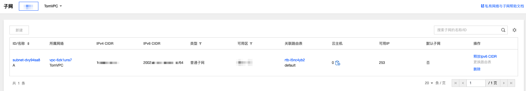 系统将为 VPC 分配一个/56的 IPv6 地址段,您可以在列表里看到 IPv6 地址段的详细信息。