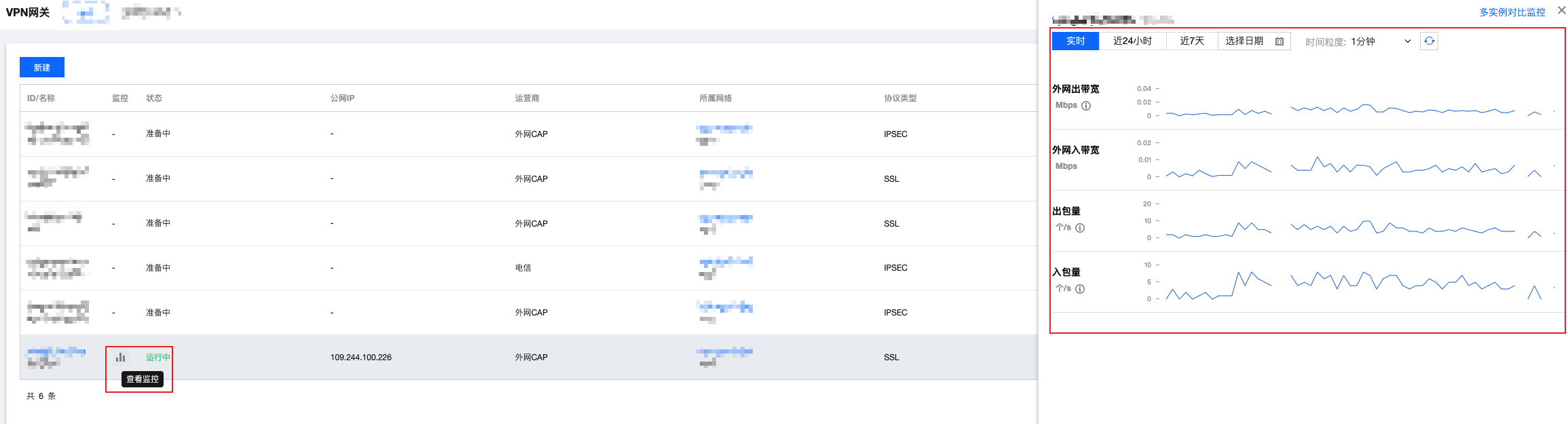 选择地域和私有网络,单击列表中需要查看的 VPN 网关监控图标,即可查看监控数据。